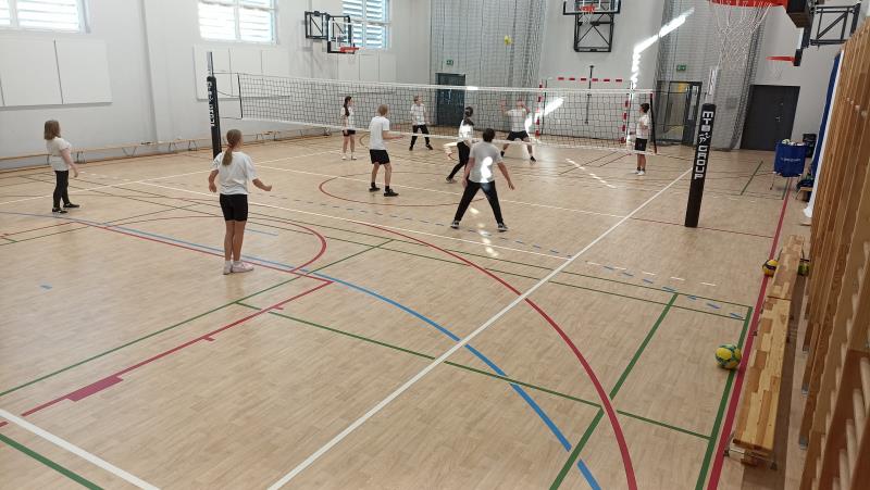 · nowoczesną w pełni wyposażoną salę gimnastyczną, zintegrowaną z budynkiem szkoły, salę przystosowaną do futsalu, koszykówki, siatkówki i badmintona,